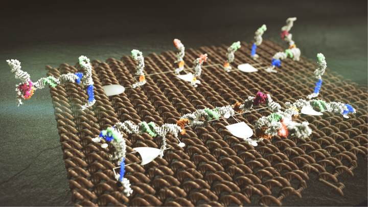 Cells use spatial constraints to control and accelerate the flow of information in enzyme cascades and signaling networks. Here we show that spatial organization can be a similarly powerful design principle for overcoming limitations of speed and modularity in engineered molecular circuits. We create logic gates and signal transmission lines by spatially arranging reactive DNA hairpins on a DNA origami. Signal propagation is demonstrated across transmission lines of different lengths and orientations, and logic gates are modularly combined into circuits that establish the universality of our approach. Because reactions preferentially occur between neighbors, identical DNA hairpins can be reused across circuits. Co-localization of circuit elements decreases computation time from hours to minutes compared to circuits with diffusible components. Detailed computational models enable predictive circuit design. We anticipate that our approach will motivate the use of spatial constraints in molecular engineering more broadly, bringing embedded molecular control circuits closer to applications.