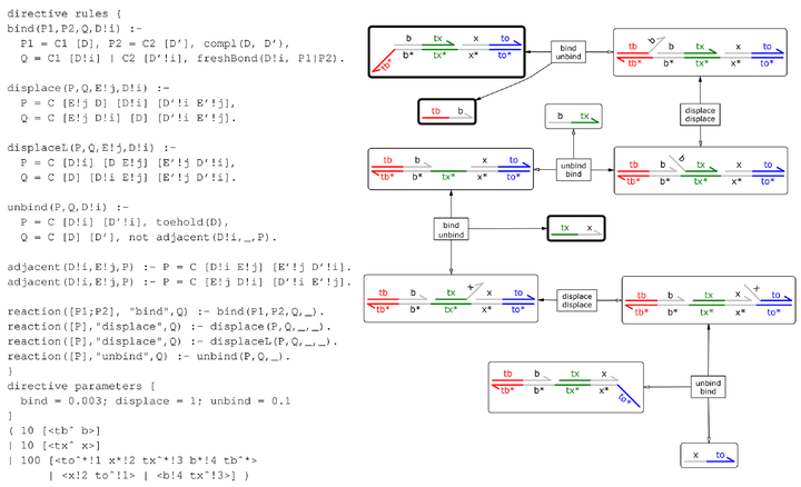 Computational nucleic acid devices show great potential for enabling a broad range of biotechnology applications, including smart probes for molecular biology research, in vitro assembly of complex compounds, high-precision in vitro disease diagnosis and, ultimately, computational theranostics inside living cells. This diversity of applications is supported by a range of implementation strategies, including nucleic acid strand displace- ment, localization to substrates, and the use of enzymes with poly- merase, nickase, and exonuclease functionality. However, existing computational design tools are unable to account for these strategies in a unified manner. This paper presents a logic programming lan- guage that allows a broad range ofcomputational nucleic acid systems to be designed and analyzed. The language extends standard logic programming with a novel equational theory to express nucleic acid molecular motifs. It automatically identifies matching motifs present in the full system, in order to apply a specified transformation expressed as a logical rule. The language supports the definition of logic predicates, which provide constraints that need to be satisfied in order for a given rule to be applied. The language is sufficiently expressive to encode the semantics of nucleic strand displacement systems with complex topologies, together with computation performed by a broad range of enzymes, and is readily extensible to new implementation strategies. Our approach lays the foundation for a unifying framework for the design of computational nucleic acid devices.